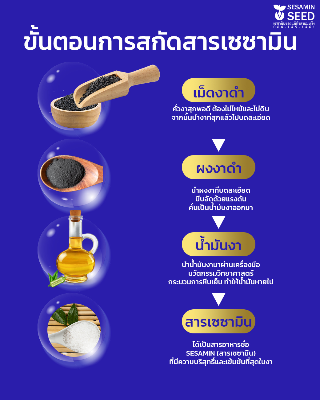 เซซามิน คือ สารบริสุทธิ์ที่อยู่ในงา ไม่ใช่น้ำมันงา กระบวนการสกัดสารเซซามินบริสุทธิ์ต้องผ่านกระบวนการทางวิทยาศาสตร์หลายขั้นตอน